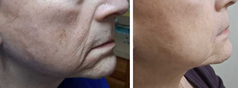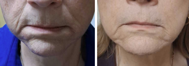 I have several patients who have lost significant weight, but are unhappy with the effect on their facial appearance.This is 70 year old female, before, and 6 months after starting a series of 3 treatments with Morpheus8. She achieved improved contour of the jaw line, much less redundant skin of the face and diminished wrinkling. Call the office to set up a free consultation or use the contact form on this website.